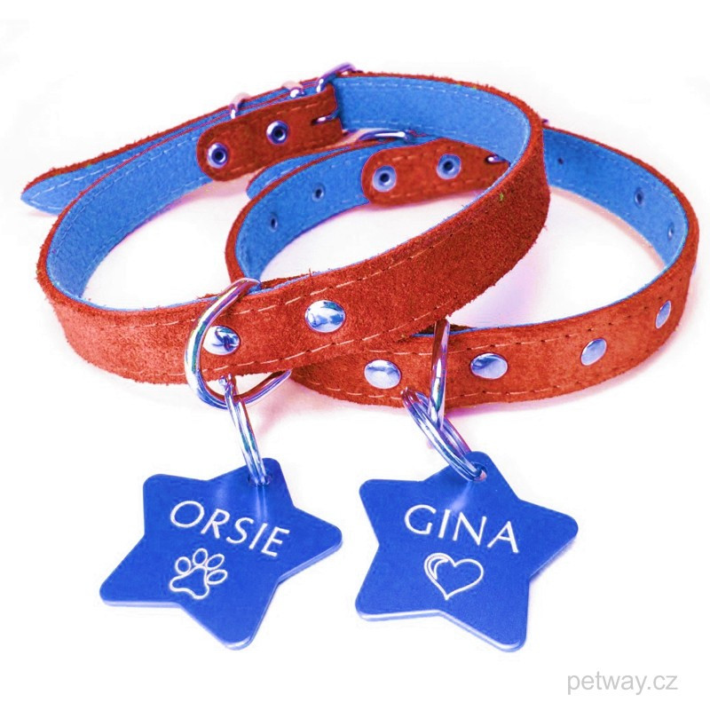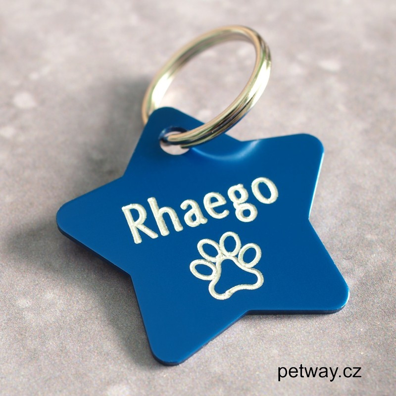 MODRÁ PSÍ ZNÁMKA PRO PSA S GRAVÍROVÁNÍM VE TVARU HVĚZDY