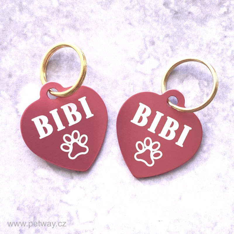 Psí známka eloxovaná - růžové srdíčko