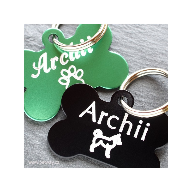 Identifikační údaje jsou na psí známku vygravírovány speciálním Fiber laserem na kovy. Stříbrno-bílá barva Vašeho motivu = dobrá čitelnost i po dlouhé době používání.