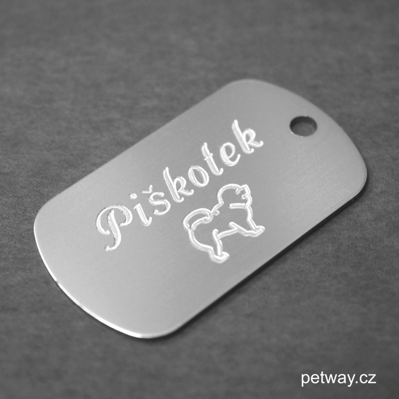 Identifikační údaje jsou na psí známku vygravírovány speciálním Fiber laserem na kovy. Stříbrno-bílá barva Vašeho motivu = dobrá čitelnost i po dlouhé době používání.