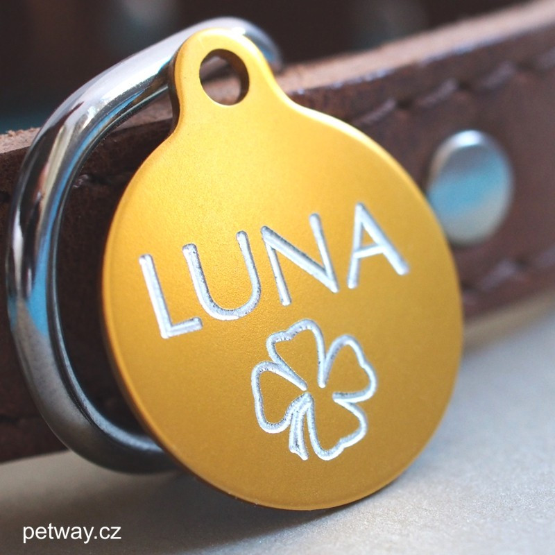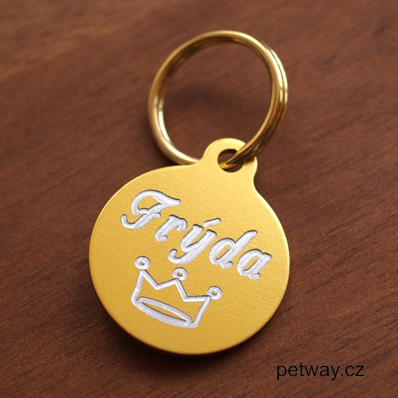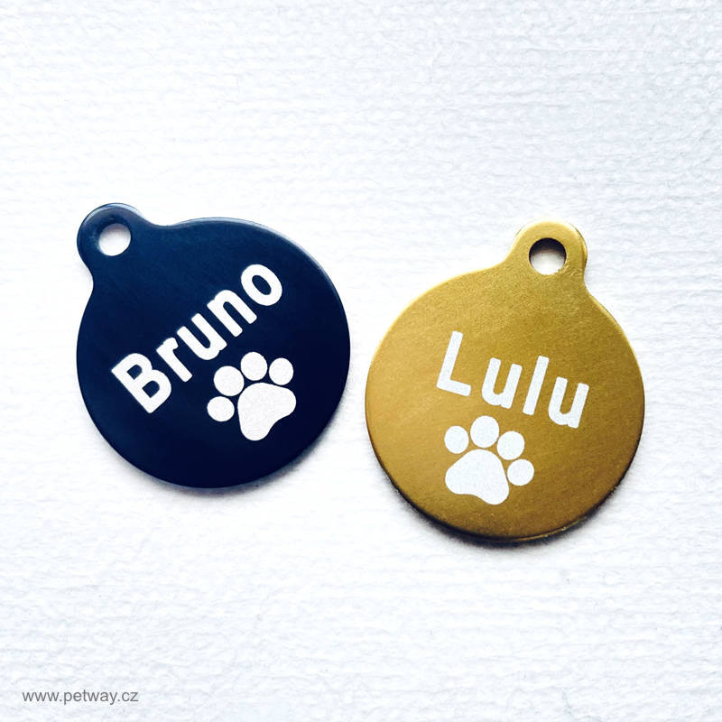Malá identifikační psí známka z eloxovaného hliníku ve tvaru kolečka o průměru 25 mm. Identifikační údaje jsou na psí známku vylaserovány speciálním Fiber laserem na kovy. Výsledný motiv má stříbrno-bílou barvu. Psí tagiska je díky nízké hmotnosti a svým rozměrům vhodná pro všechna plemena. Ke každé zdarma přibalíme kroužek pro upevnění na obojek.