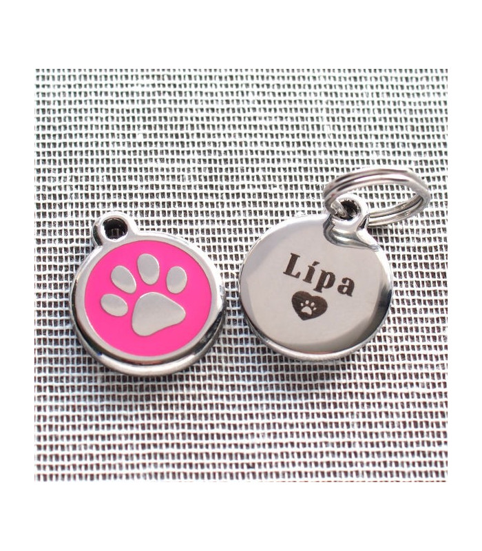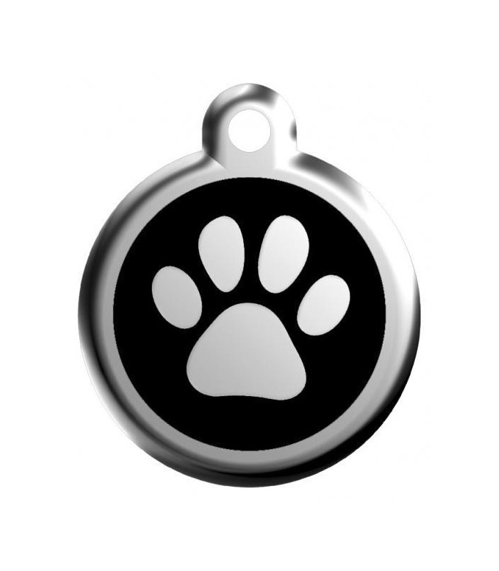 ID nerezová identifikační známka pro psy. Na přední straně je packa na černém pozadí. Zadní je určena k rytí např. jména a telefonu. Psí známky Red Dingo o průměru 20 mm jsou vhodné i pro nejmenší plemena. Ke každé známce obdržíte zdarma klíčový kroužek.