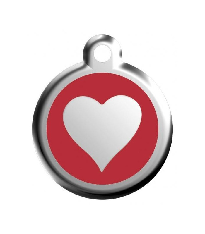Nejmenší nerezová identifikační známka pro psy. Na přední straně je srdce na červeném pozadí. Zadní je určena ke gravírování. Psí známky Red Dingo o rozměrech 20 mm jsou vhodné i pro nejmenší pejsky. Ke každé známce přibalíme zdarma klíčový kroužek.