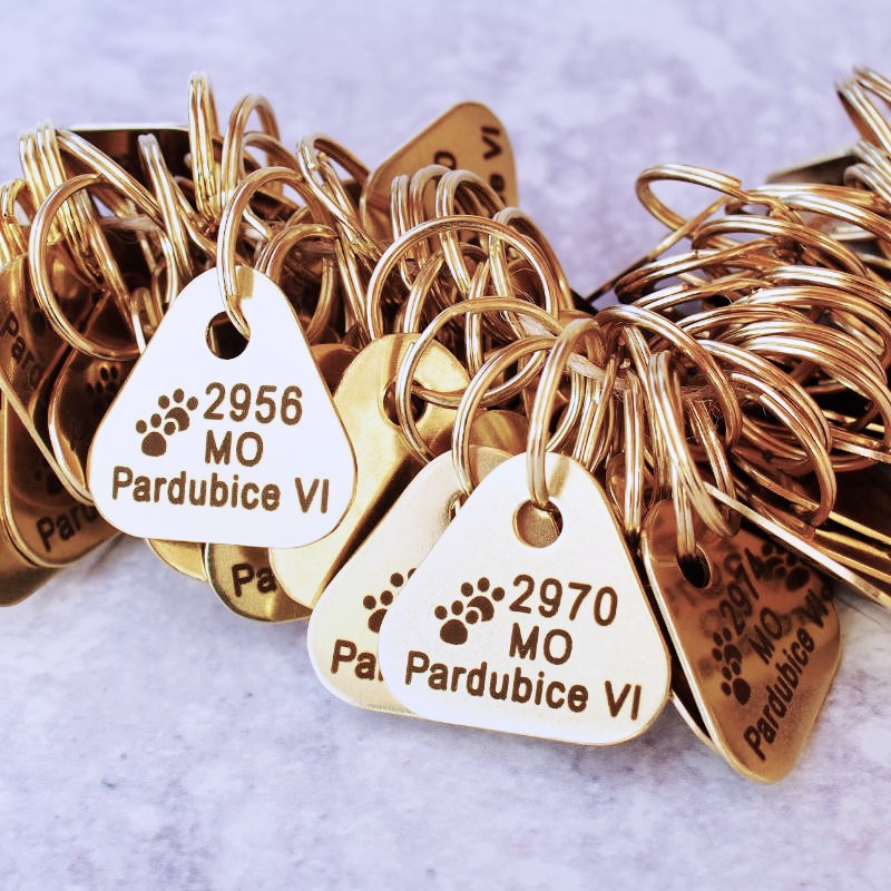 Mosazná registrační identifikační známka za dostupnou cenu. Surová mosaz je zárukou vysoké pevnosti a stálosti materiálu. Psí mosazné známky nabízí dobrý poměr mezi kvalitou a cenou. Jsou vhodné i pro malá plemena (dle tvaru). Gravírování Vašeho textu speciálním laserem na kovy zaručí trvalé označení známky v černé barvě. Výsledný motiv je tak výrazný a jasně čitelný.