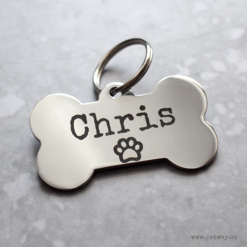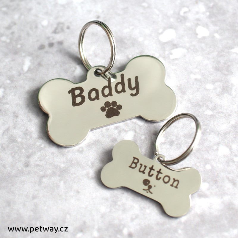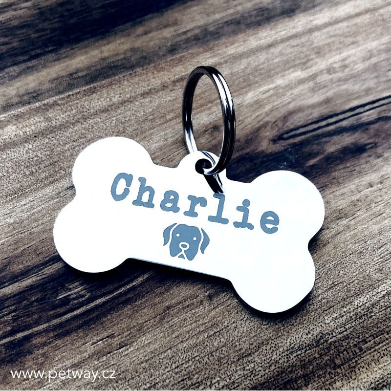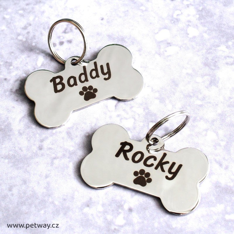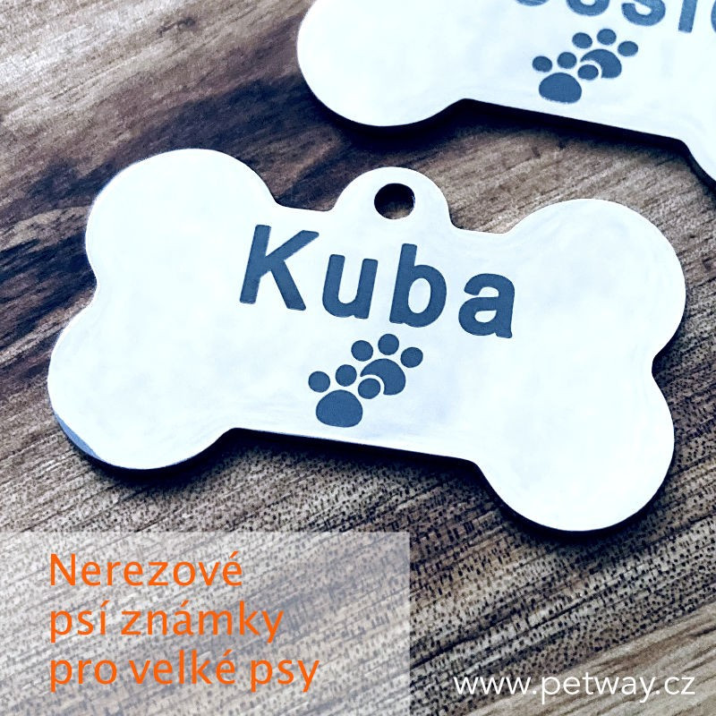 Identifikační údaje jsou gravírovány speciálním Fiber laserem na kovy. Černá barva gravírovaného motivu je v kontrastu se stříbrným povrchem psí známky a je dlouhodobě snadno čitelný a dobře viditelný.