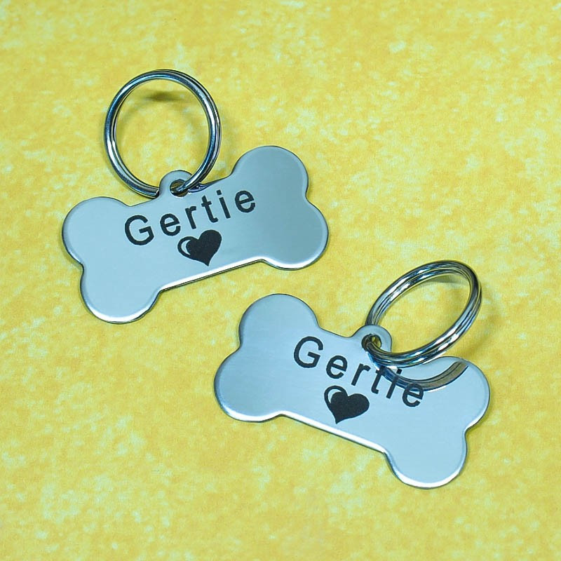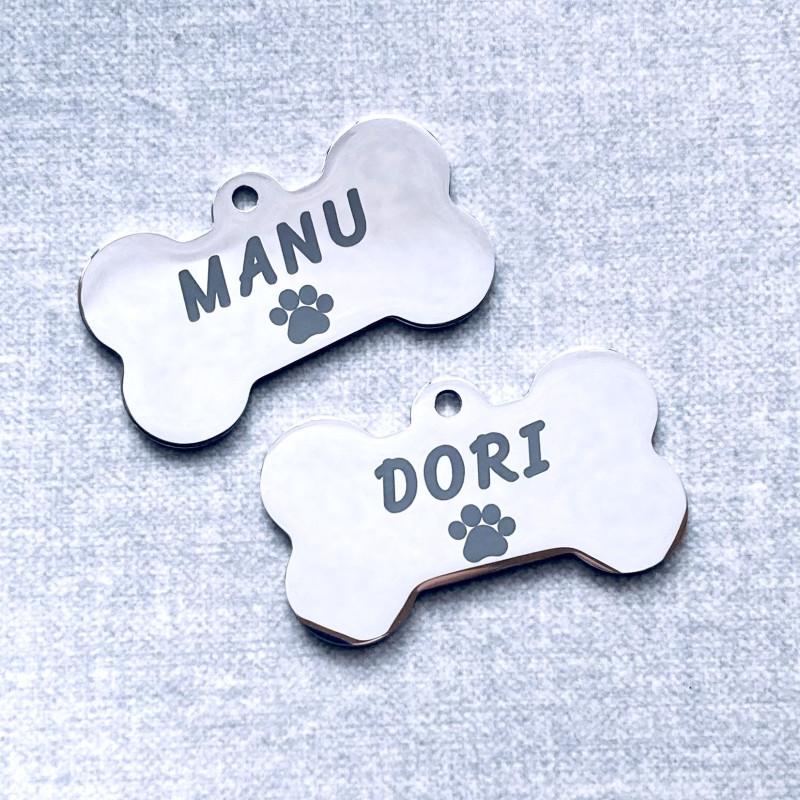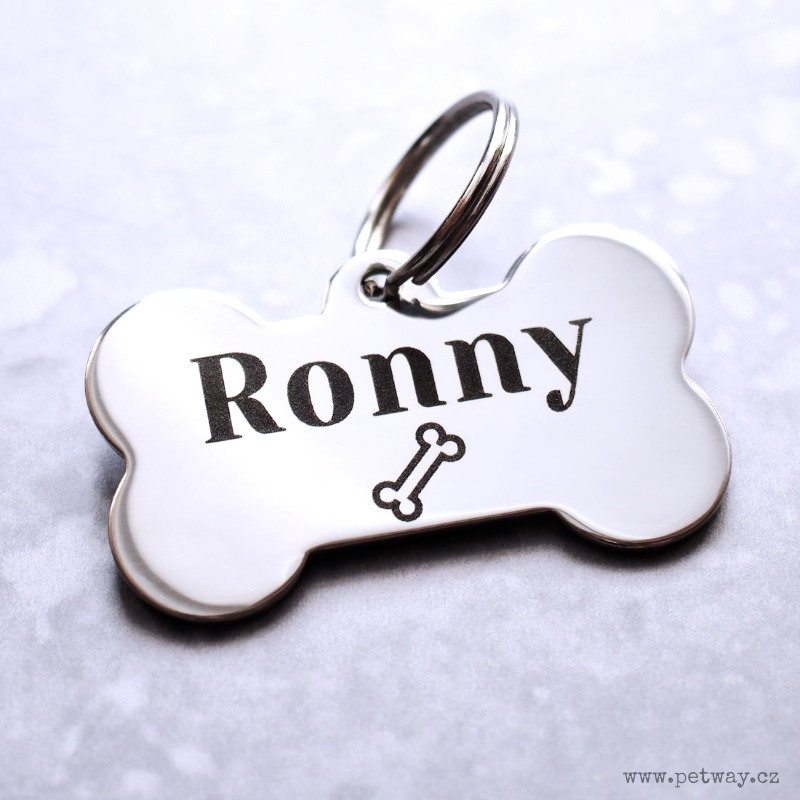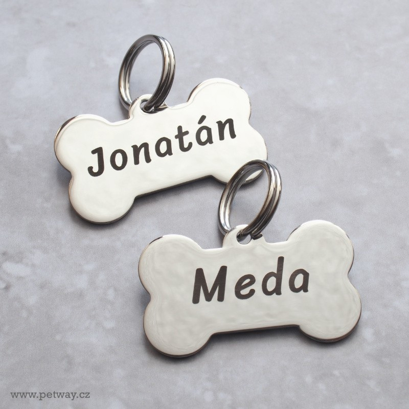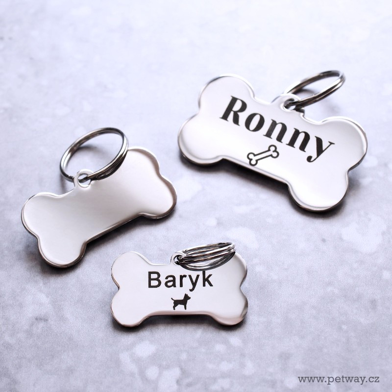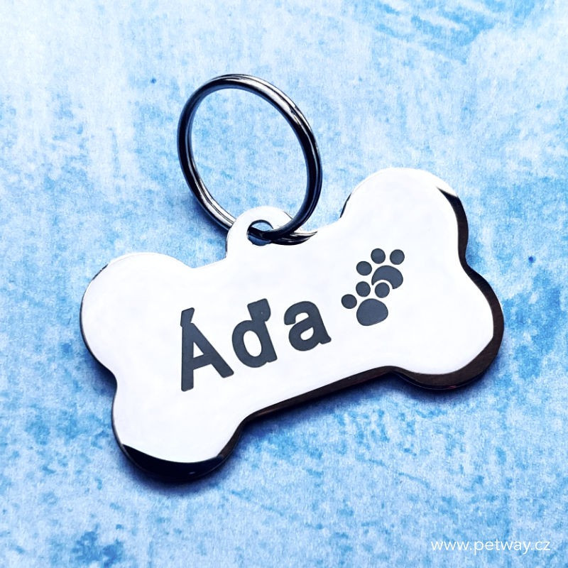 Identifikační údaje jsou gravírovány speciálním Fiber laserem na kovy. Černá barva gravírovaného motivu je v kontrastu se stříbrným povrchem psí známky a je dlouhodobě snadno čitelný a dobře viditelný.