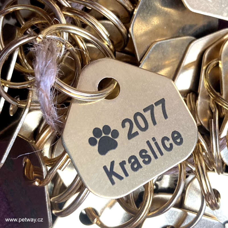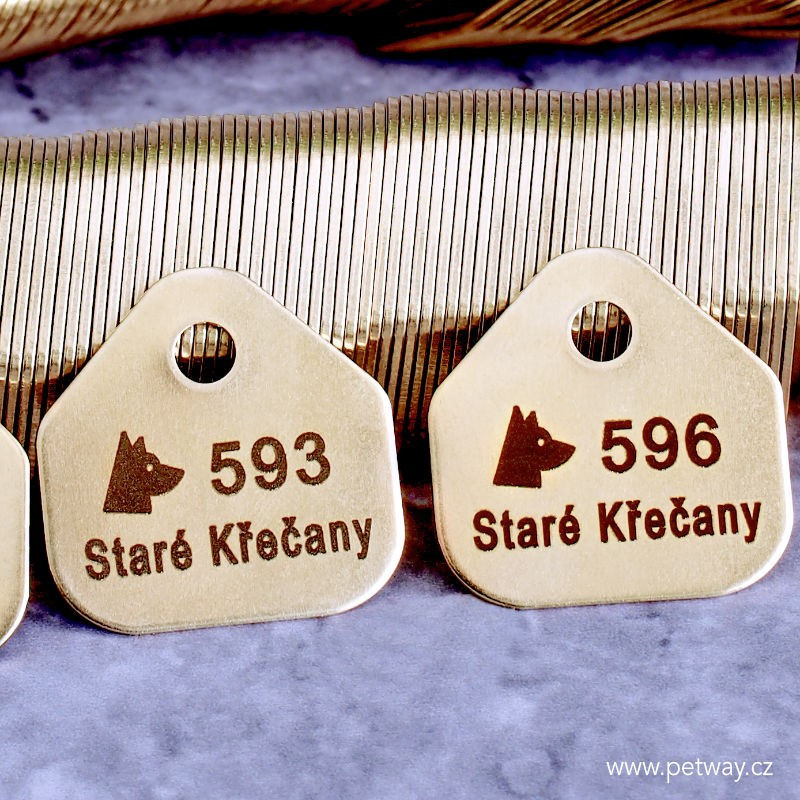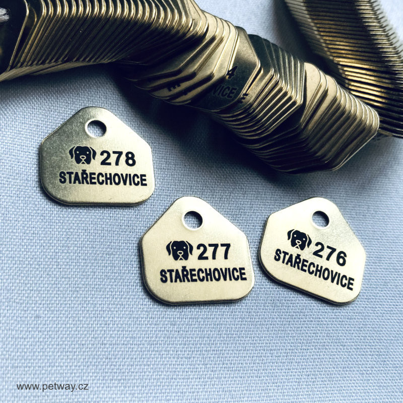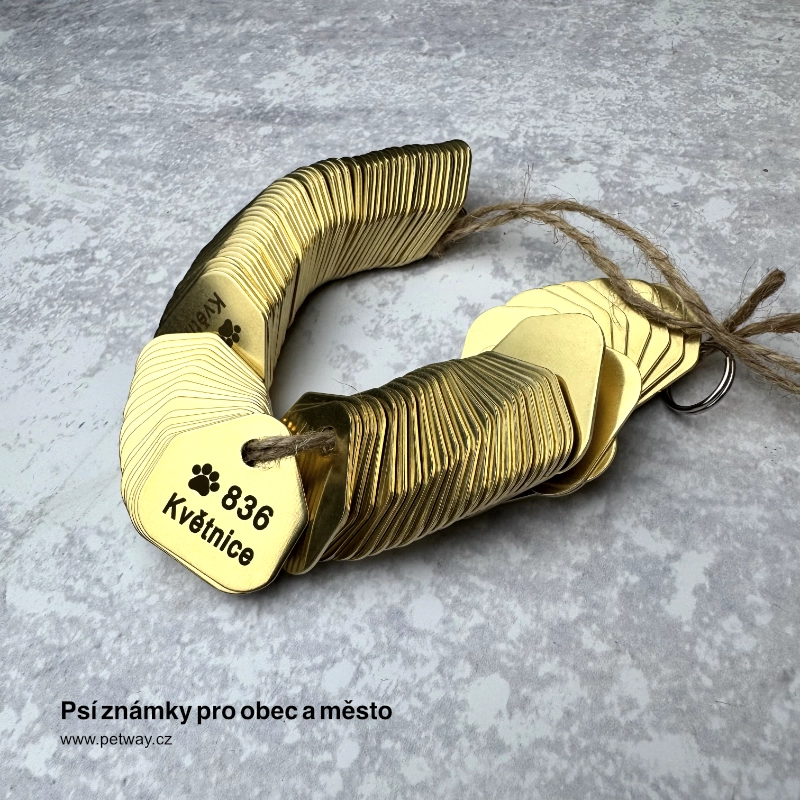Registrační identifikační psí známky v počtu 100 ks s gravírováním číselné řady a názvu obce. ID známky jsou zabaleny dle číselného pořadí a za příplatek 2 Kč/ks mohou být navlečeny na klíčový kroužek. Registrační cedulky budou gravírovány jednoduchým fontem Arial pro jeho jednoduchost a snadnou čitelnost. Na druhou stranu známky si od nás můžete nechat zvěčnit logo či znak města, obecní symboly apod. Více zde.