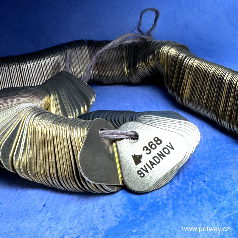 - všechny známky jsou gravírovány fiber laserem pro černé a trvanlivé označení