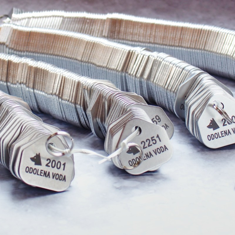 - všechny známky jsou gravírovány fiber laserem pro černé a trvanlivé označení