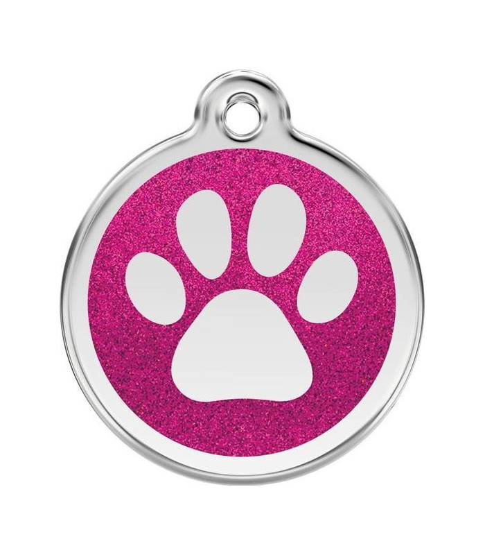 Největší nerezová identifikační známka pro psy. Na přední straně je packa na třpytivém růžovém podkladu. Na zadní gravírujeme jméno, telefon a adresu. Psí známky Red Dingo o průměru 38 mm jsou vhodné pro velká a obří plemena. Ke každé známce obdržíte zdarma klíčový kroužek.