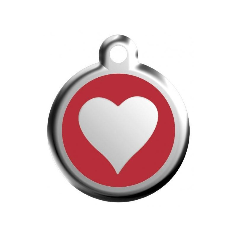 Psí známka Red Dingo je velmi pevná a odolná vůči oděru. Známku standardně dodáváme s pochromovaným závěsným kroužkem pro připojení k obojku. Identifikační známku se srdcem na přední straně si lze objednat ve třech velikostech - 20, 30 a 38 mm.