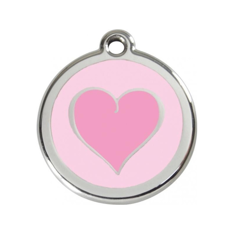 Nerezová cedulka se srdíčkem pro velkého psa od Red Dingo. Na přední straně je symbol růžového srdce. Gravírování textu patří na zadní stranu. Psí známky Red Dingo o průměru 38 mm jsou pro velká a obří plemena. Ke každé známce přibalíme zdarma klíčový kroužek.
