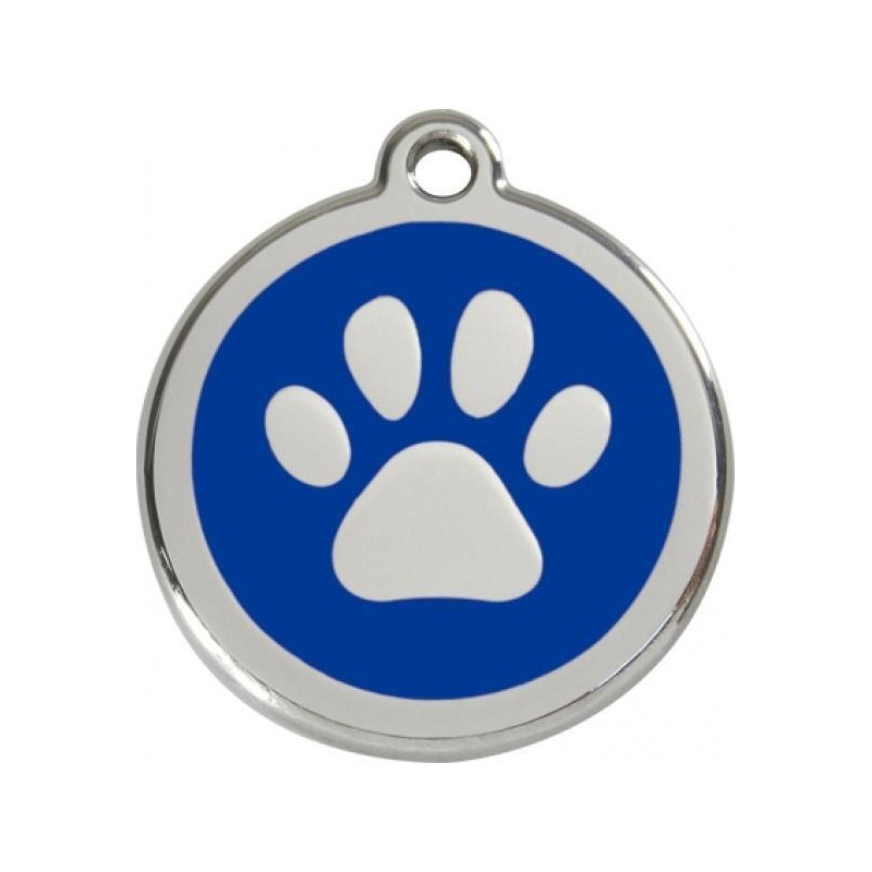 Velká nerezová psí známka Red Dingo tlapka s gravírováním. Identifikační údaje, které si sami vložíte do formuláře níže, budou na známce jasně viditelné a snadno čitelné po celou dobu životnosti známky. Na přední straně je symbol psí packy na smaltovaném podkladu. Na zadní stranu Vám vygravírujeme jméno, telefon, adresu, obrázek z naší nabídky apod. Psí známky Red Dingo o rozměrech 38 mm jsou vhodné pro velká a obří plemena. Ke každé známce náleží originální nerezový kroužek k připevnění známky na obojek.