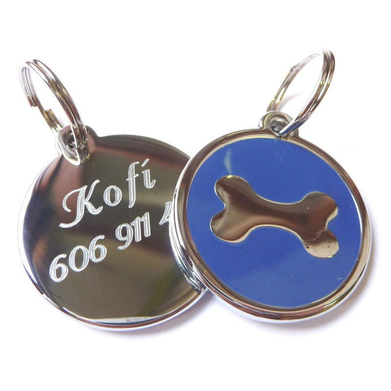 Tagiska - identifikační známka pro psy. Na přední straně je kostička na modrém pozadí. Zadní strana je určena k vyrytí Vámi zvolených údajů. Tyto střední smaltované známky pro psy jsou díky své velikosti 30 mm vhodné pro středně a velké psy.