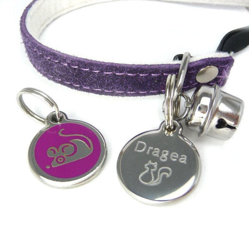Identifikační známka pro kočky Red Dingo - myška. Velmi odolná známka z nerezu, zdobená smaltem. Hlavní předností známky jsou velmi malé rozměry a nízká hmotnost. Přední stranu tvoří symbol, zadní strana známky pro kočky je určena k vyrytí Vámi zvolených údajů.