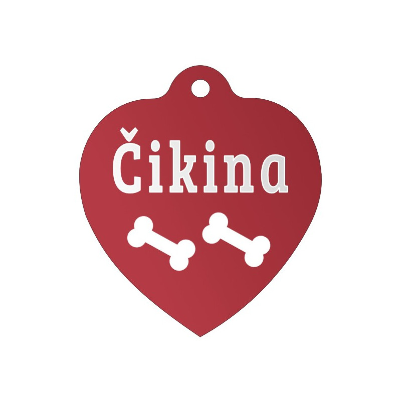 Červená ID známka pro psy srdce s gravírováním