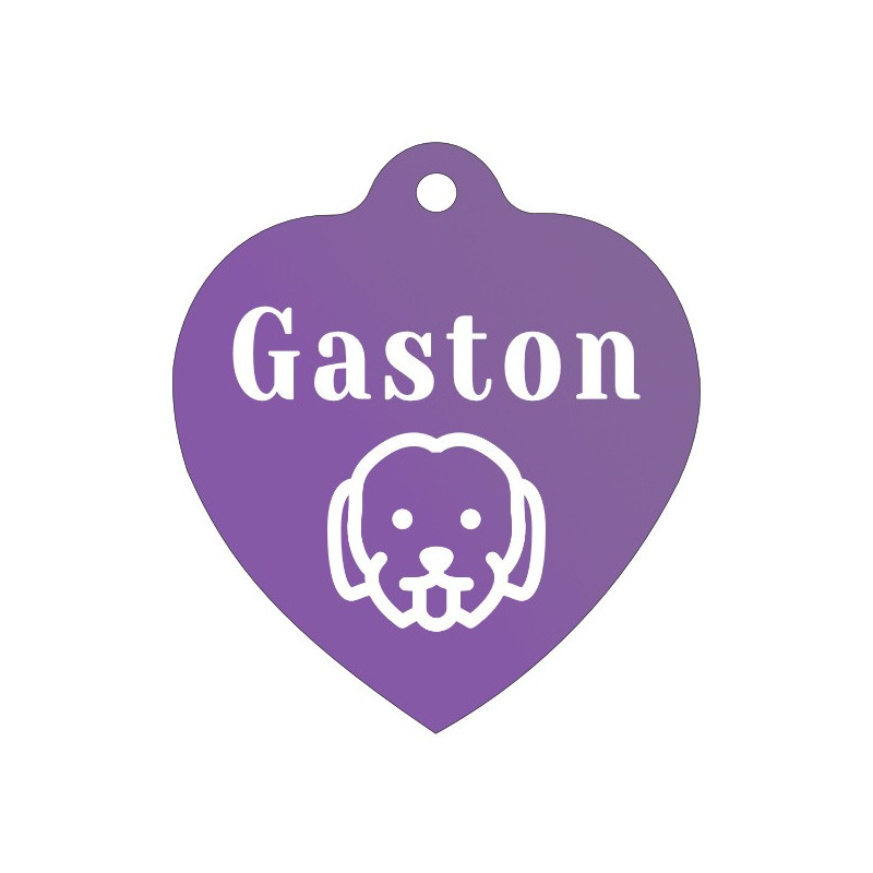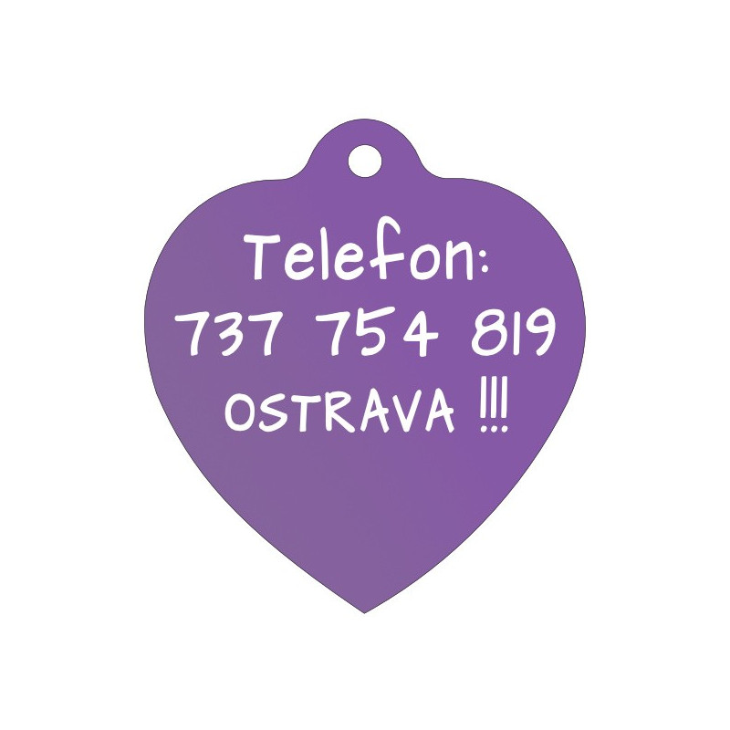 Fialová ID známka pro psy srdce s gravírováním