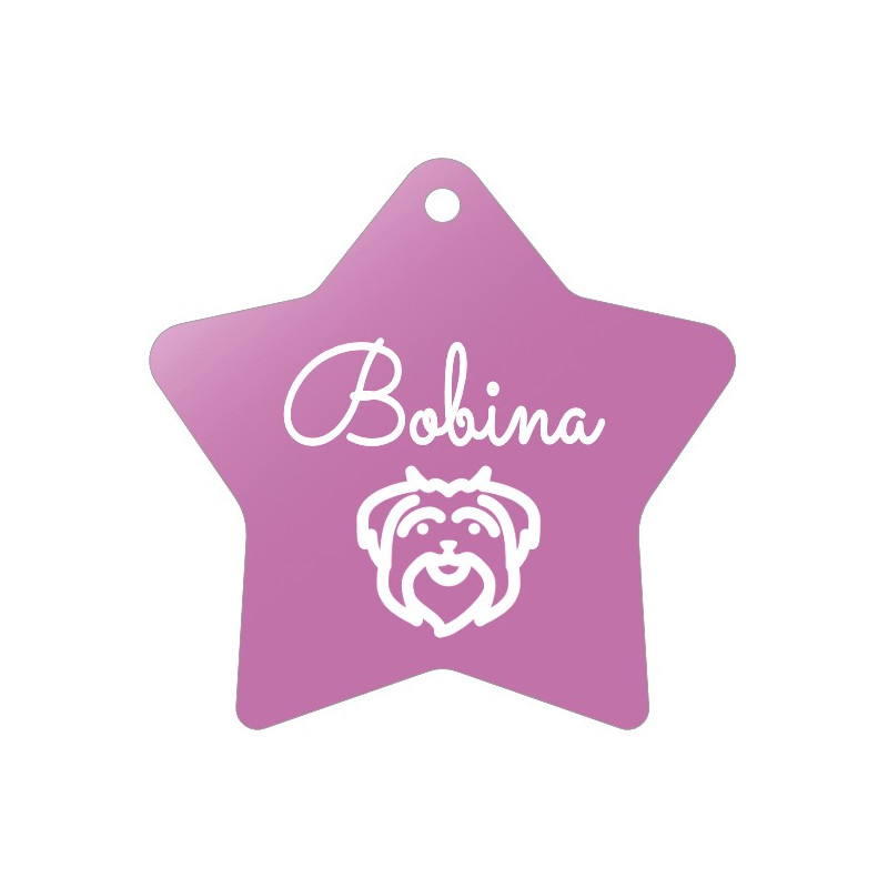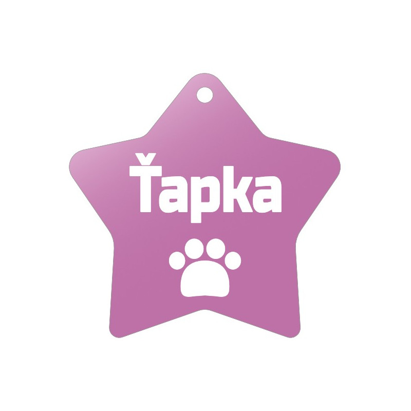 Růžová psí známka hvězda s rytím vlastního návrhu