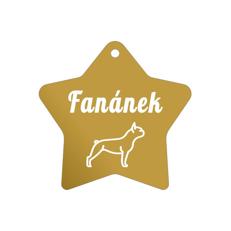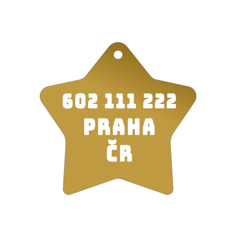 Zlatá psí známka hvězda s rytím vlastního návrhu